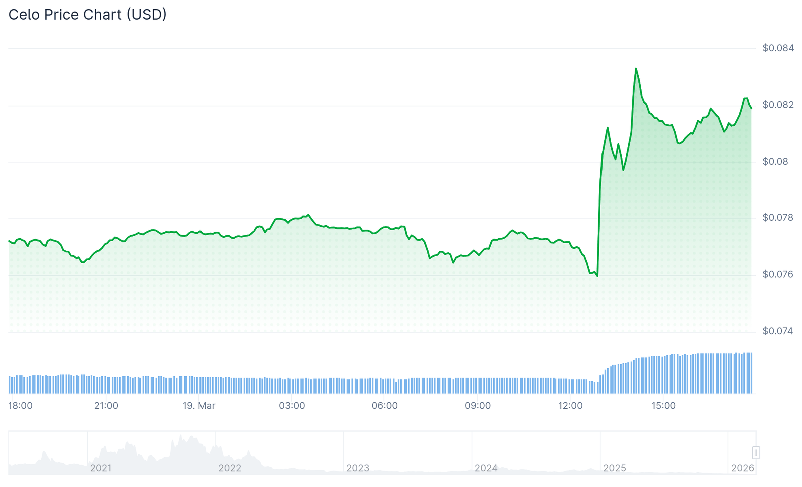 CELO rallied over 7% on the day on the news, bucking a broader market slump, though the token remains 99% below its 2021 highs and was trading around $0.08 at time of writing.
