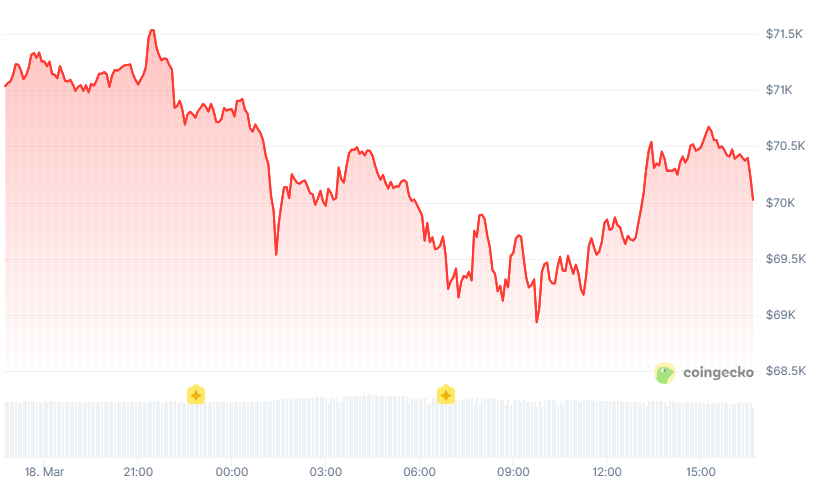 Bitcoin drops below $70,000 as the Fed raises its inflation forecast and oil-driven price pressures cloud the outlook for rate cuts.