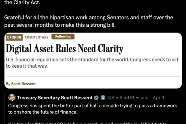 Brian Armstrong, the Coinbase CEO who withdrew the crypto exchange’s support for the Digital Asset Market Clarity Act in January, said “it’s time” for the legislation to pass after months of delays. In a Thursday X post, Armstrong said that Coinbase agreed with comments from US Treasury Secretary Scott Bessent in a recent Wall Street…